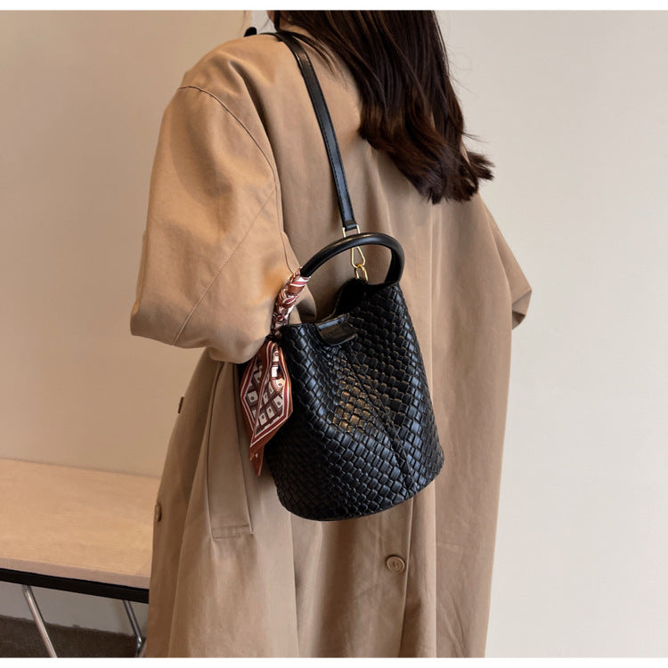 🔥🔥🔥下殺中。2025新款法式小眾手提包編織單肩斜挎包質感洋氣兩用水桶包